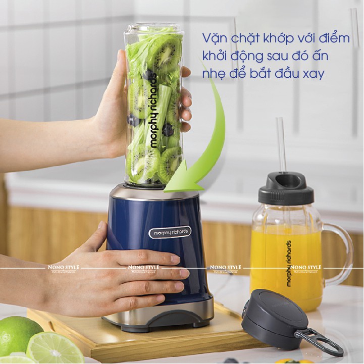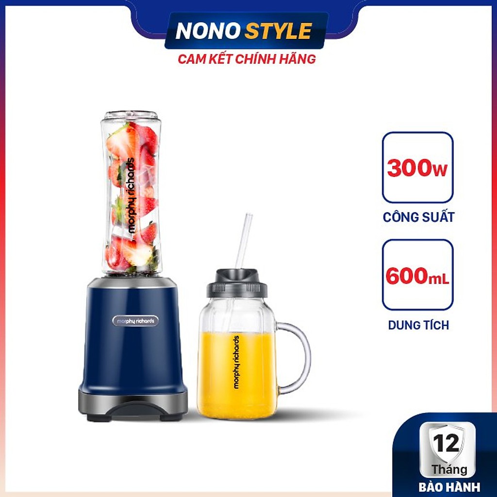 Máy xay trái cây 2 cốc Morphy Richards MR9500- Dung tích 1 lít, công suất lớn 300W xay nhuyễn hoa quả - BH 12 THÁNG