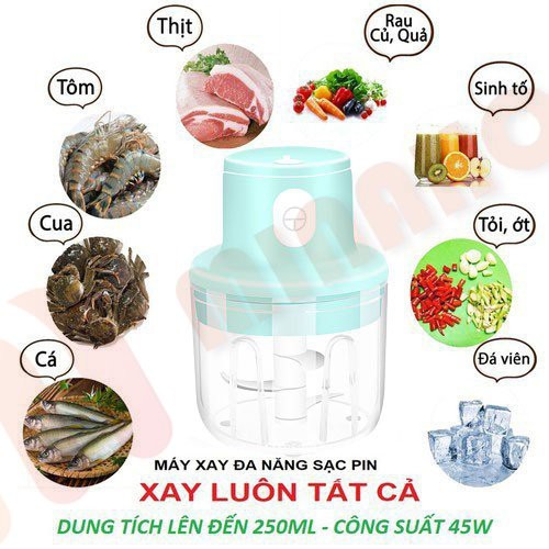 👉 Nhỏ gọn, tiện lợi, đa năng, xay được nhiều loạt thịt, tỏi, ớt, củ quả...