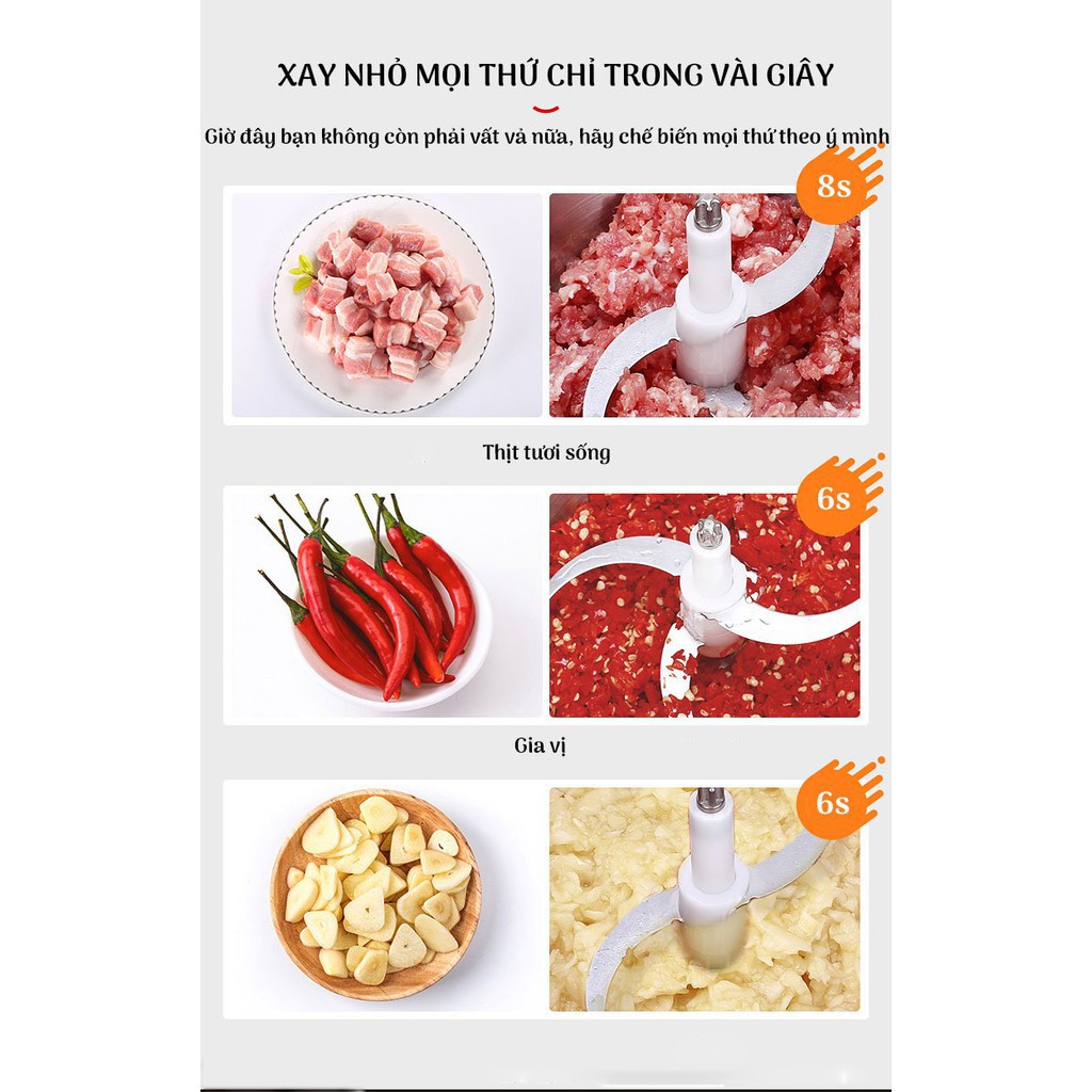 Thiết Bị Điện Gia Dụng > Đồ gia dụng nhà bếp > Máy chế biến thực phẩm & Xay thịt || Máy xayMáy Xay Đa Năng, Cối INOX 304Kích thước: 26 cm * 14 cm * 13 cmCòn hàng