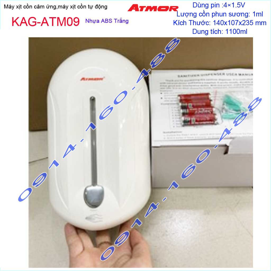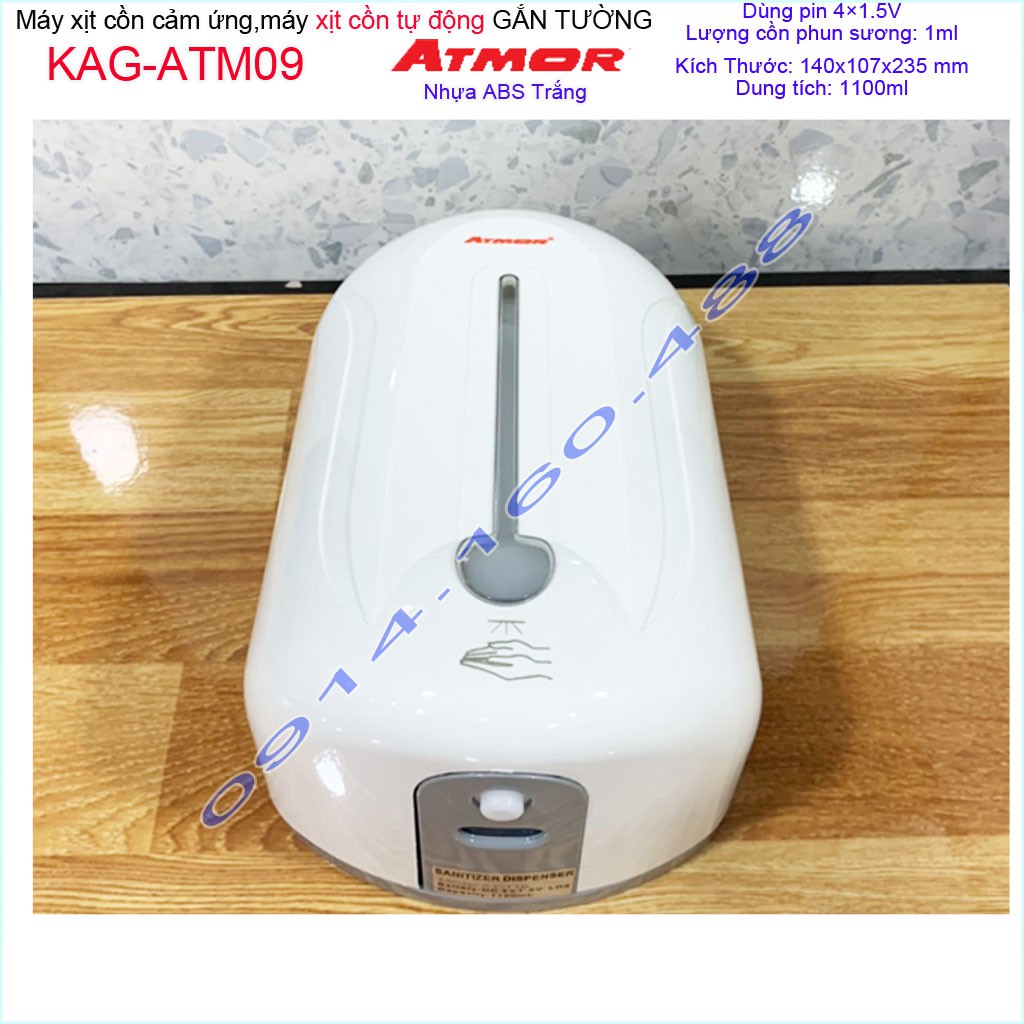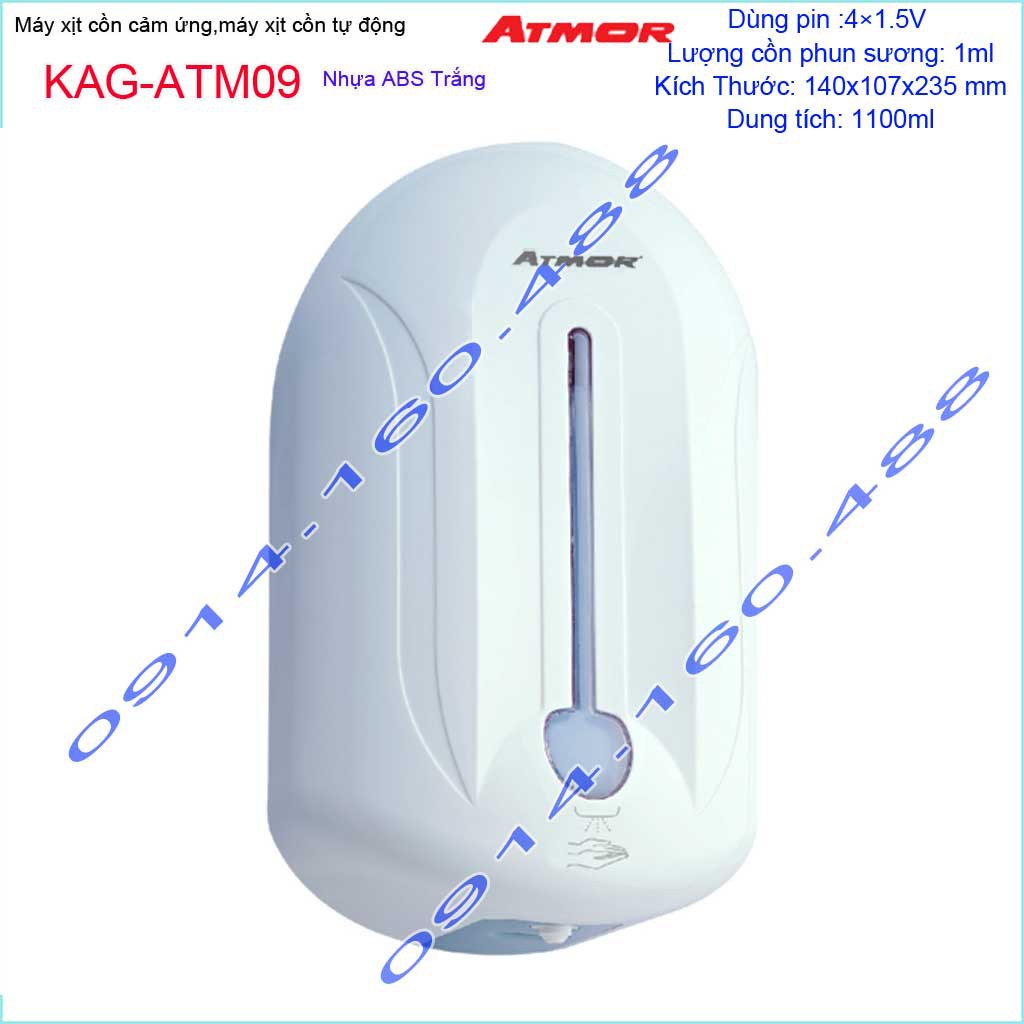 Máy xịt cồn cảm ứng Atmor KAG-ATM09, Máy phun cồn tự động 1.1 lít dùng pinKích thước Dài 14cmx rộng 11cm x cao 24cm. Dung tích bình đựng: 1100ml (1.1 lít)