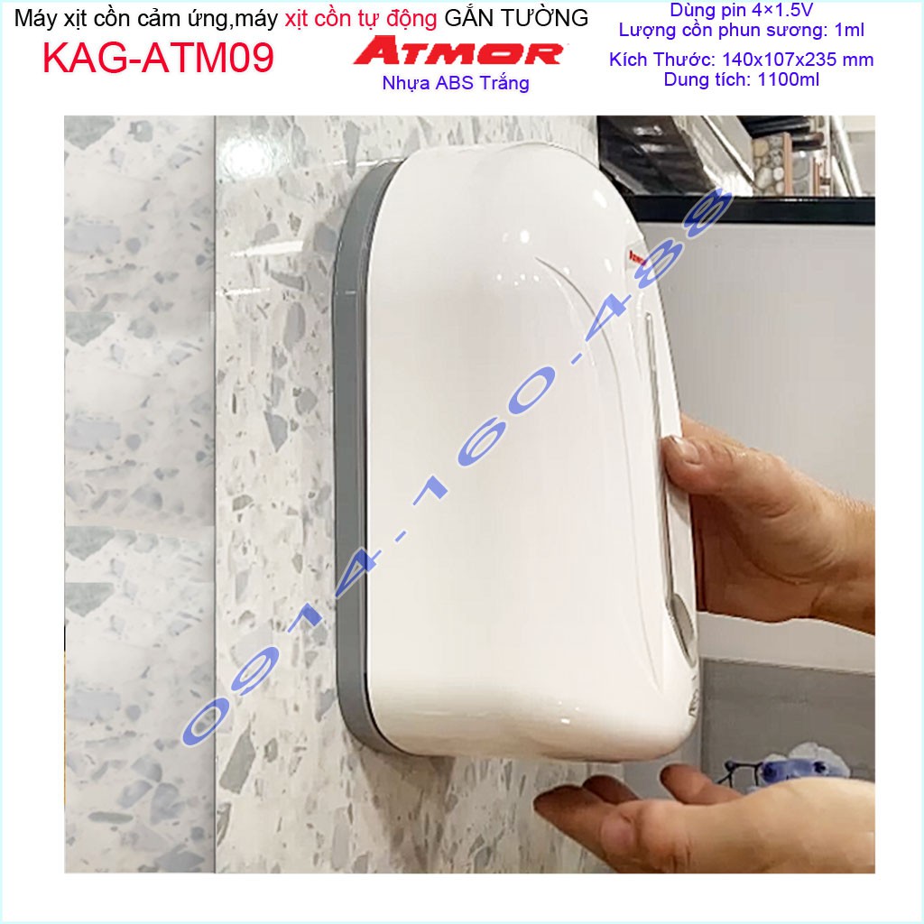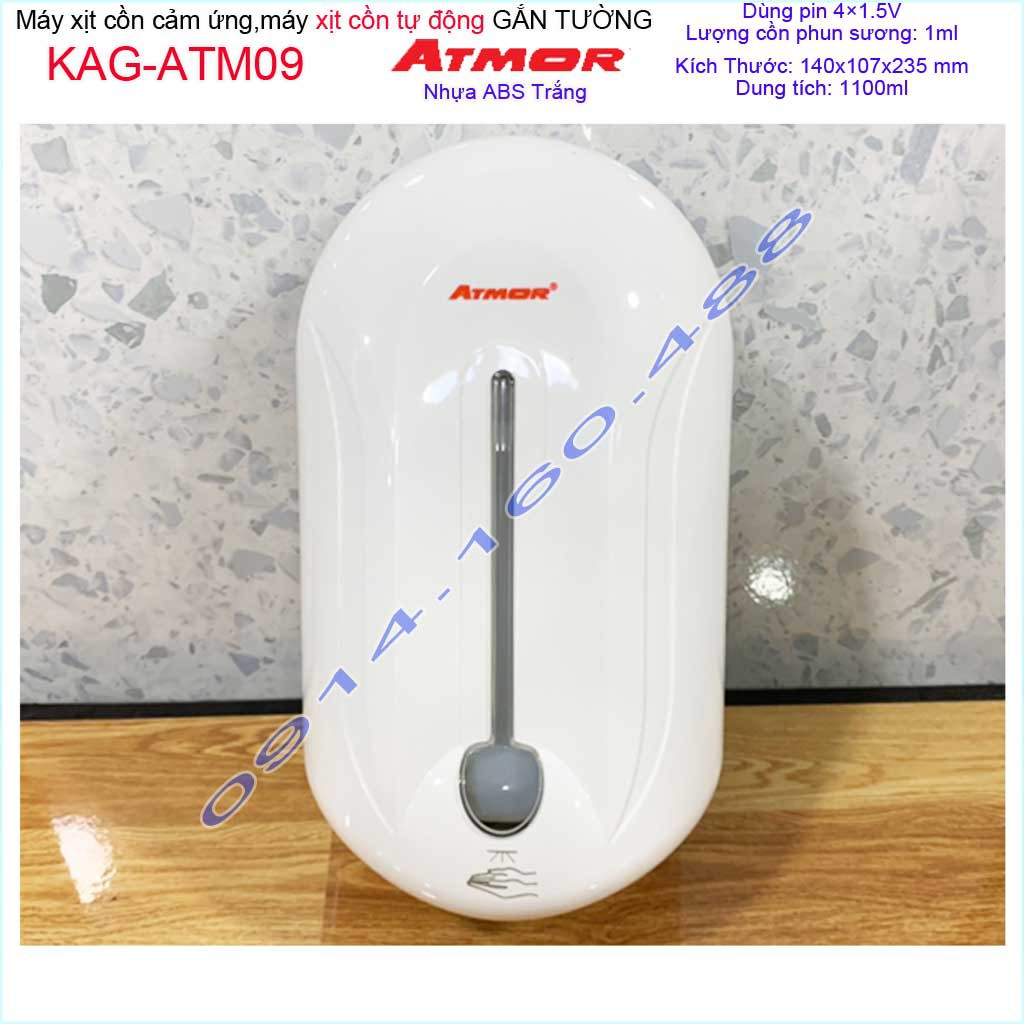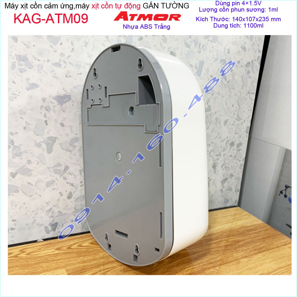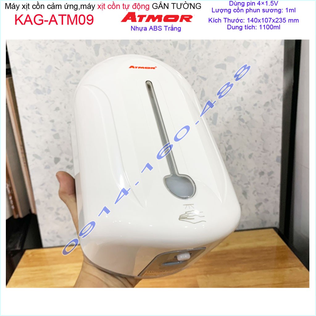 Máy xịt cồn cảm ứng Atmor KAG-ATM09, Máy phun cồn tự động 1.1 lít dùng pinKích thước Dài 14cmx rộng 11cm x cao 24cm. Dung tích bình đựng: 1100ml (1.1 lít)