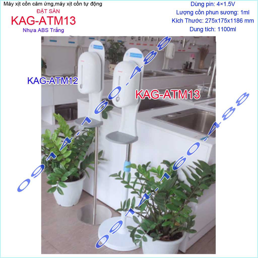 Máy xịt cồn cảm ứng Atmor KAG-ATM13 đặt sàn đế trắng, Máy phun cồn tự động 1.1 lít dùng pin cho trường học