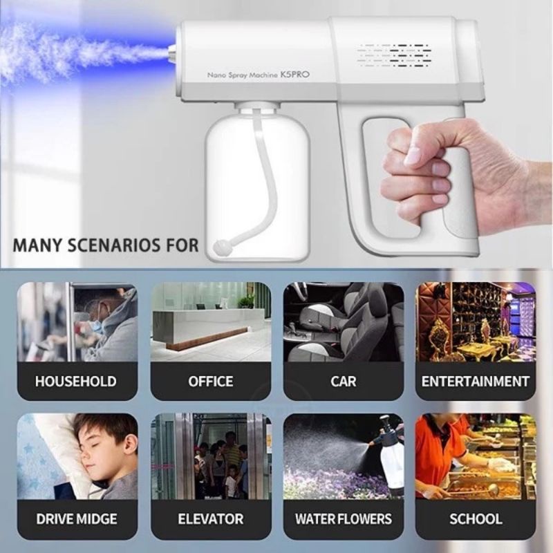 Ngoài tác dụng phun khử khuẩn vệ sinh hằng ngày. Súng phun K5 còn có thể sử dụng như một máy tạo độ ẩm, máy xông mùi hương hoặc tưới cây.