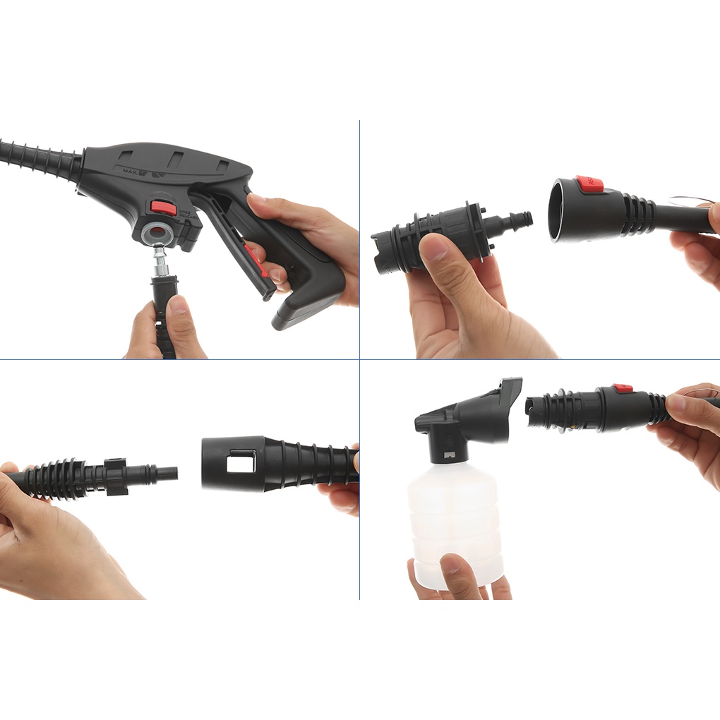 ● Không lo thiếu dây, khoảng cách sử dụng linh hoạt với ống phun 10m, ống nước 3m