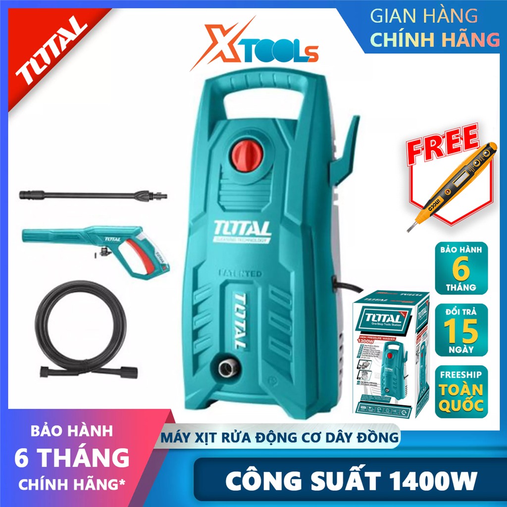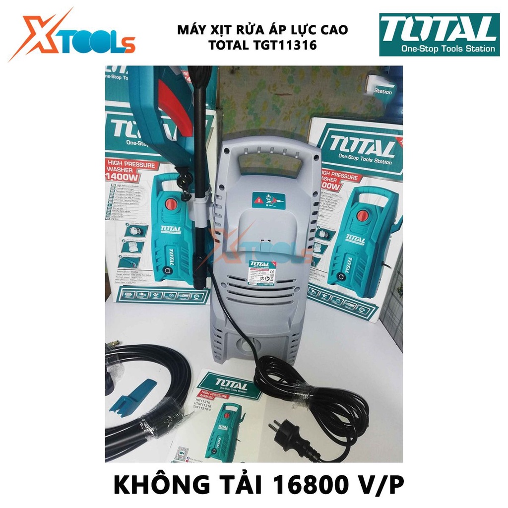 Nhà cửa & Đời sống > Dụng cụ & Thiết bị tiện ích > Dụng cụ > Máy rửa áp lực nước || Máy xịt rửa TOTAL TGT11316 máy phun xịt áp lực cao Công suất 1400W, Điện áp định mức 220-240V~50/60Hz, 16800 vòng/phútCòn hàng