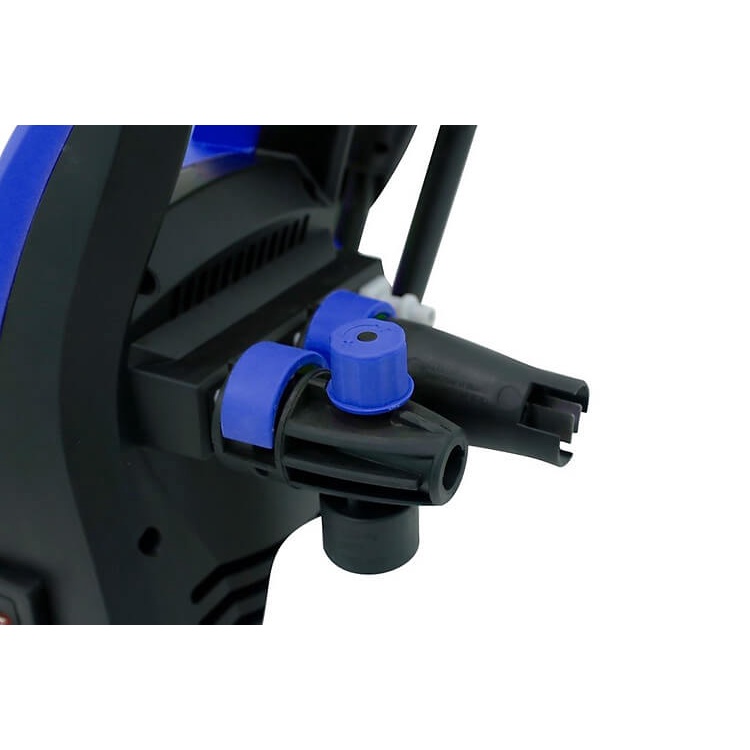 Ngay phía trước máy xịt rửa này, nhà sản xuất thiết kế 2 vị trí lắp ống dẫn nước vào và đầu nước ra cực tiện lợi, lắp đặt dễ dàng bằng cách vặn khớp nối dẫn, và ngay vị trí lắp ống vào có nắp đậy kín giúp bảo quản không cho các vật chất hay bụi bẩn đi vào lúc không sử dụng.