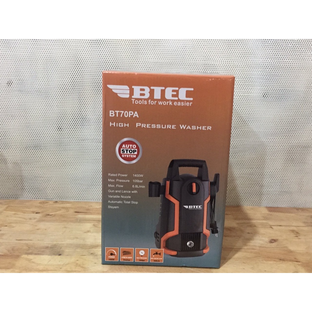 Nhà cửa & Đời sống > Dụng cụ & Thiết bị tiện ích > Dụng cụ > Máy rửa áp lực nước || Máy xịt rửa xe Btec BT70PA - 1400WCòn hàng