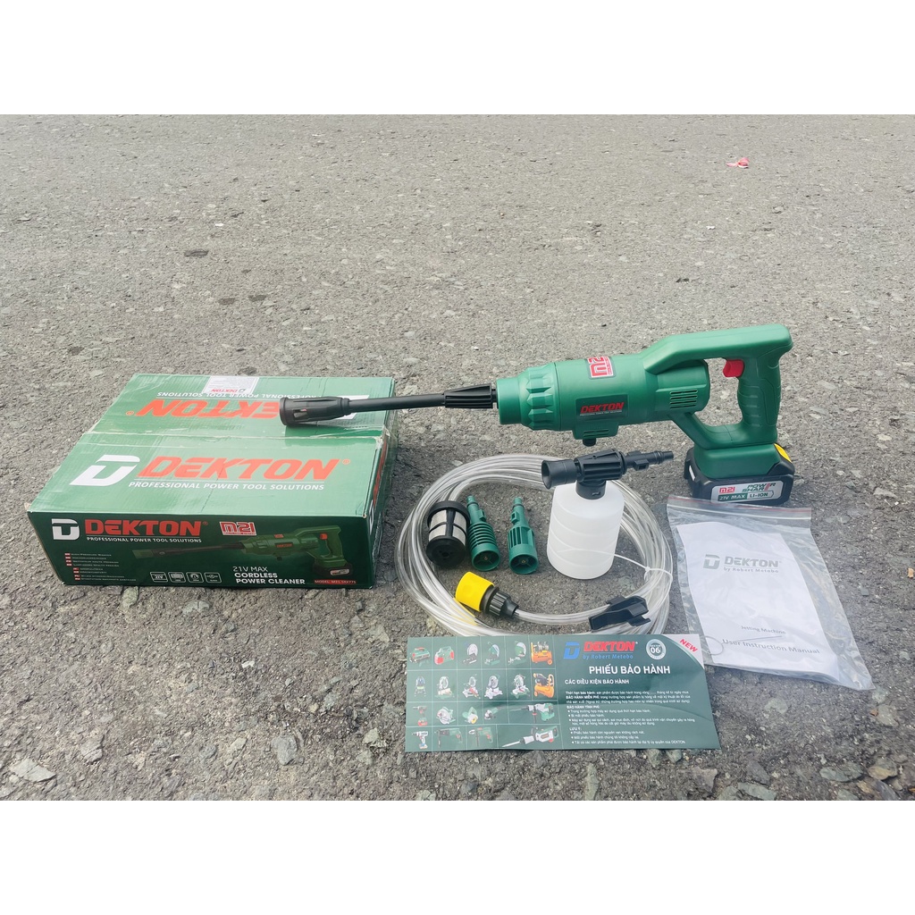 Nhà cửa & Đời sống > Dụng cụ & Thiết bị tiện ích > Dụng cụ > Máy rửa áp lực nước || Máy xịt rửa xe cầm tay Dekton áp lực cao 50 Bar sử dụng pin 21V công suất 180W dùng xịt rửa xe, vệ sinh nhà cửaCòn hàng