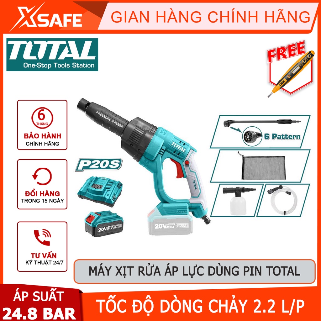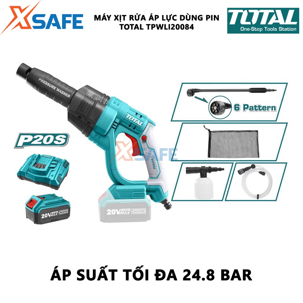 Nhà cửa & Đời sống > Dụng cụ & Thiết bị tiện ích > Dụng cụ > Máy rửa áp lực nước || Máy xịt rửa xe cầm tay TOTAL TPWLI20084 Máy xịt rửa áp lực kèm 1 pin 4.0Ah, 1 sạc nhanh cùng nhiều phụ kiện hỗ trợCòn hàng