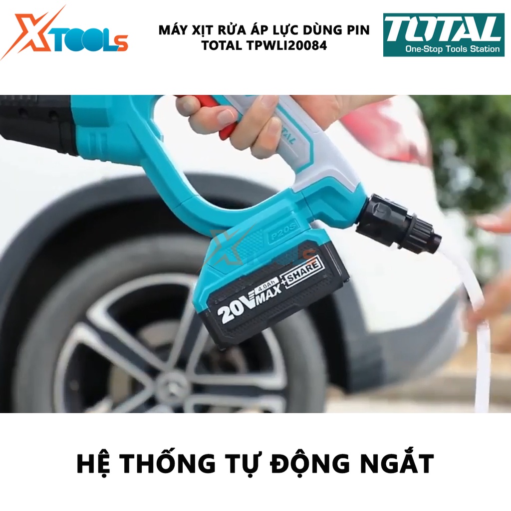 Máy xịt rửa xe cầm tay TOTAL TPWLI20084 Máy xịt rửa áp lực dùng pin Điện thế 20V Áp suất t 24.8 Bar Lưu lượng nước 2.2L/
