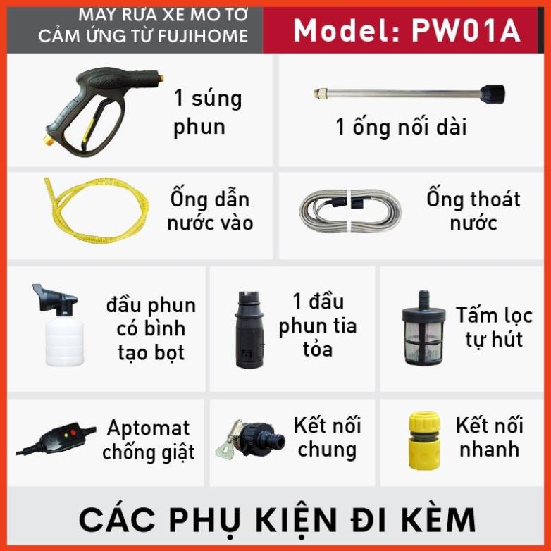 Máy xịt rửa xe cao áp chống giật cho ô tô xe máy Fujihome PW01 | PW01A, máy bơm rửa xe cầm tay tăng áp lực cao