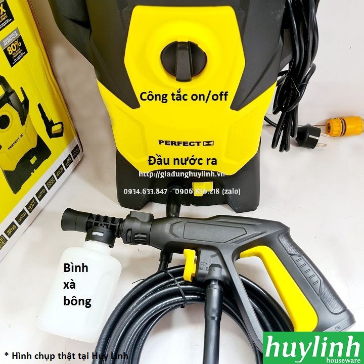 Máy rửa xe Perfect PF-AO85 với công suất 1600W, áp lực bơm 120 bar, dễ dàng đánh bay rông rêu, vết bẩn cứng dầu.Huy Linh phân phối và bảo hành chính hãng tại Perfect USA Việt Nam.