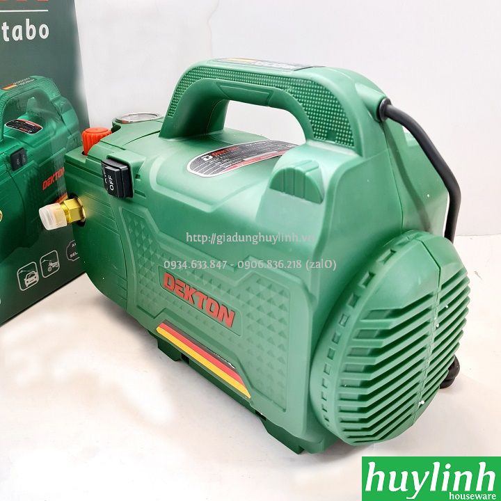 - Máy xịt rửa xe Dekton DK-CWR2950 với thiết kế nhỏ gọn, màu xanh đặc trưng của thương hiệu Dekton (nhận diện) với tay cầm chắc chắn, dễ dàng di chuyển, cất giữ hay mang theo để sử dụng trong công trình.