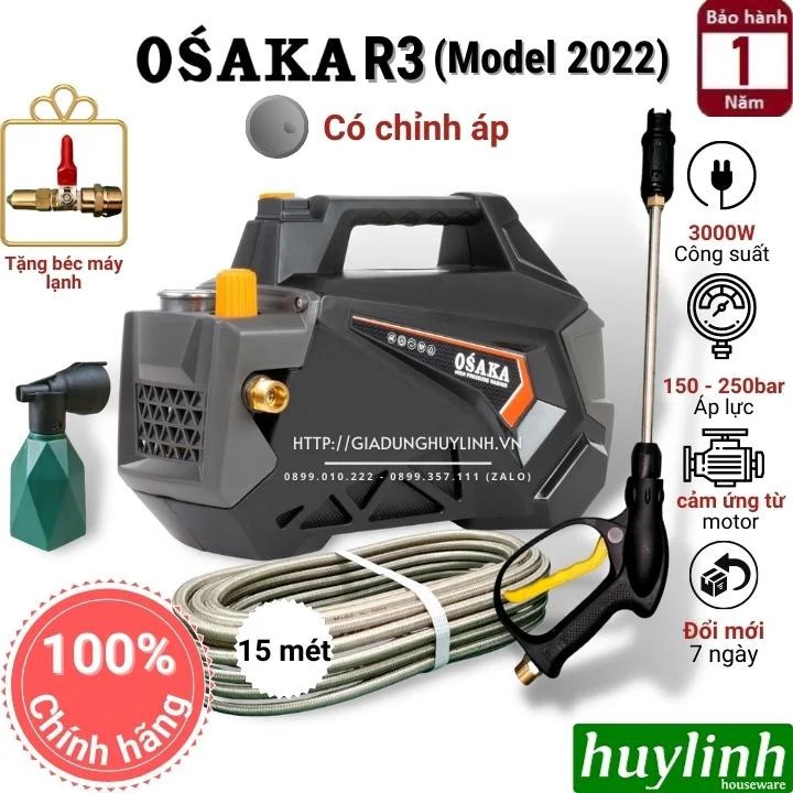Máy xịt rửa xe chỉnh áp Osaka R3 - 3000W - Model 2022 - Tặng béc rửa máy lạnh, điều hoà
