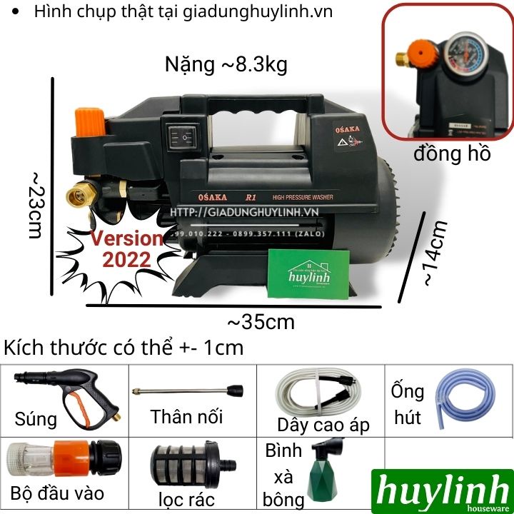 Máy rửa xe Osaka R1 được ra mắt năm 2020, với thiết kế nổi bật có Khả Năng Chỉnh Áp Lực Phun trên thân máy, công suất tối đa 2800W, dễ dàng xịt rửa máy lạnh, điều hòa, xe cộ, rong rêu.Huy Linh phân phối và bảo hành chính hãng tại Osaka Việt Nam.