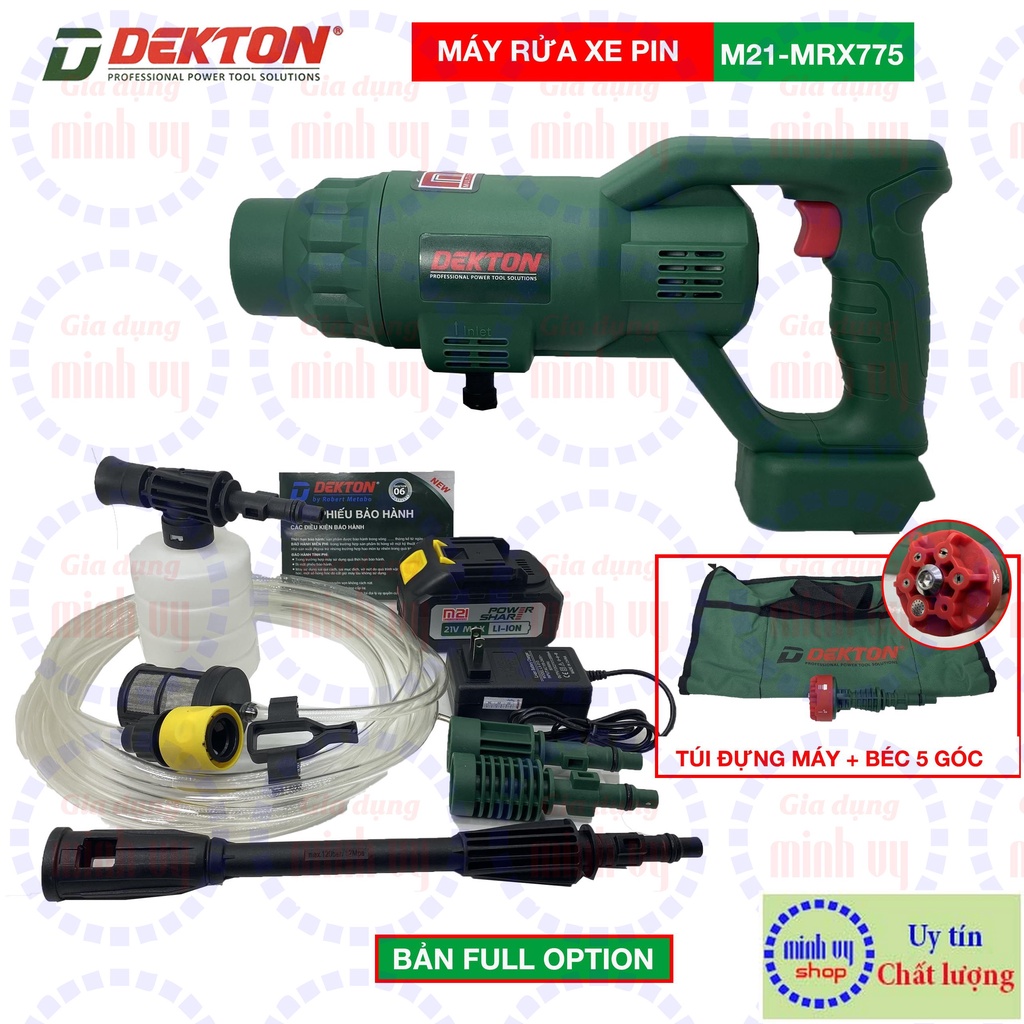 Thông số kỹ thuật Máy xịt rửa cao áp dùng pin Dekton M21 SRX-775:- Model: M21-SRX775