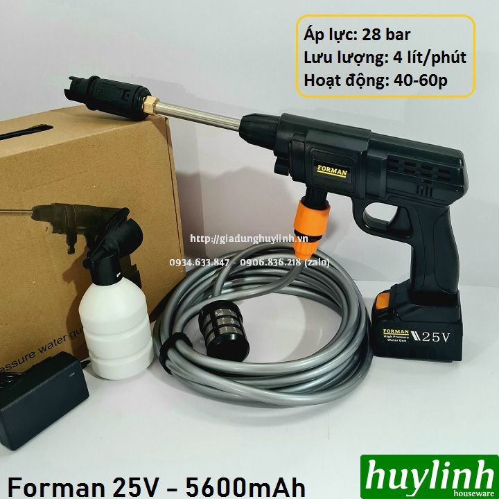 Máy xịt rửa xe dùng pin Forman 25V - 5600mAh - 28 bar