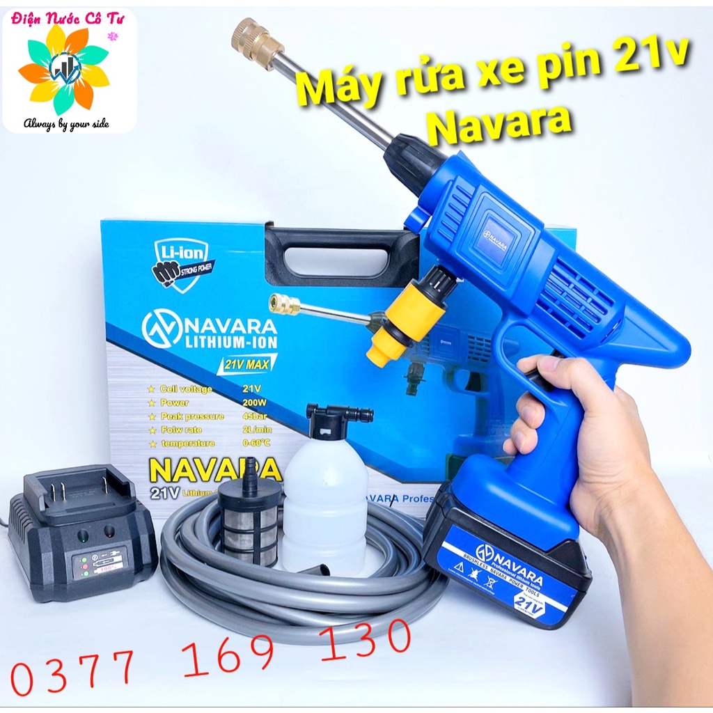 Máy xịt rửa xe gia đình dùng pin 21V NAVARA tiện dụng rửa điều hòa tưới cây rửa xe ô tô xe máy
