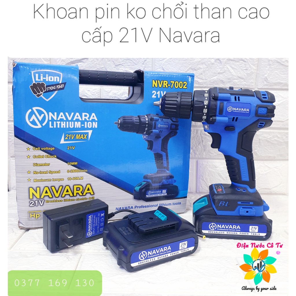 Máy khoan pin ko chổi than cao cấp NAVARA NVR-7002 21V