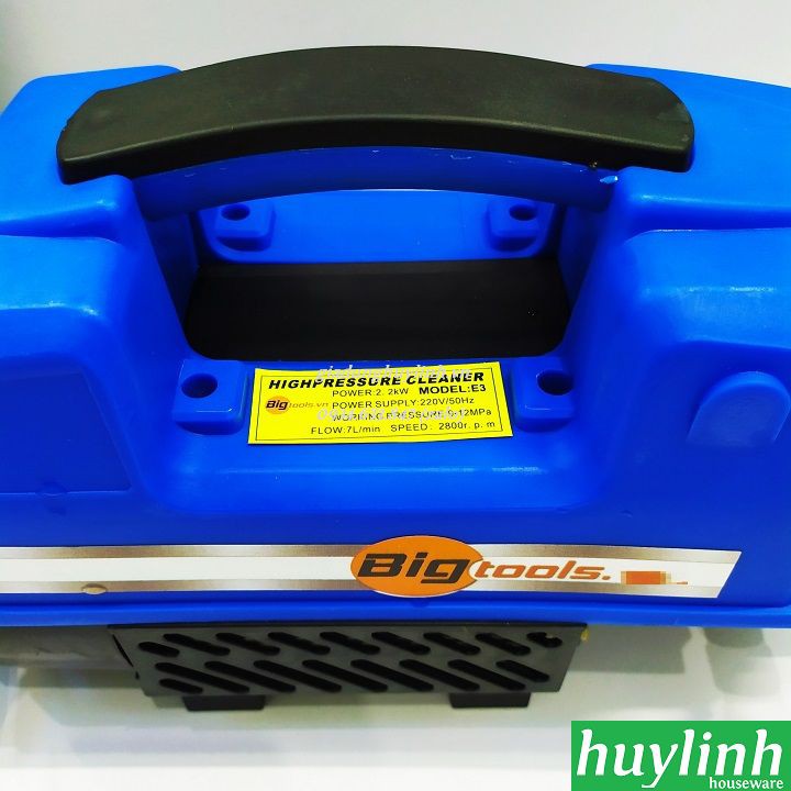- Máy xịt rửa xe Bigtools E3 với công suất 2200W, lưu lượng nước tối đa 7 lít/ phút, áp lực bơm lên tới 120 bar.