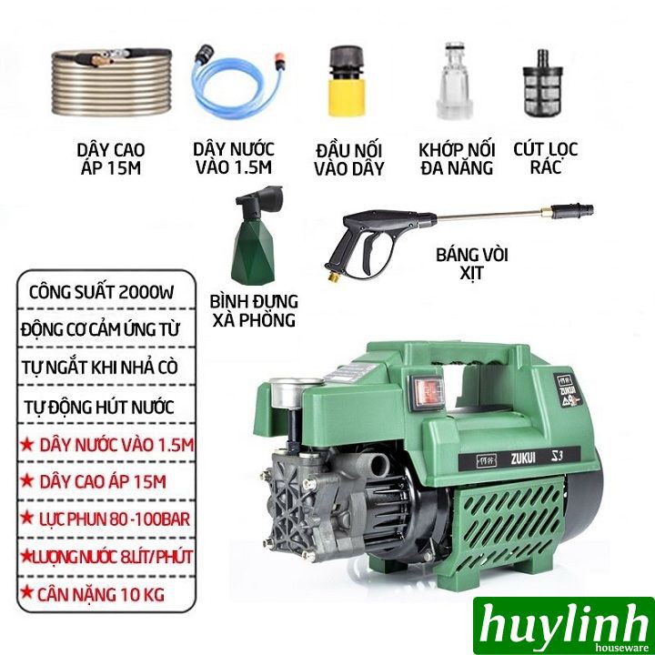 Nhà cửa & Đời sống > Dụng cụ & Thiết bị tiện ích > Dụng cụ > Máy rửa áp lực nước || Máy xịt rửa xe mini gia đình Zukui S3 2000W - may rua xe - Dây cao áp 15 mét + thân nối dàiCòn hàng