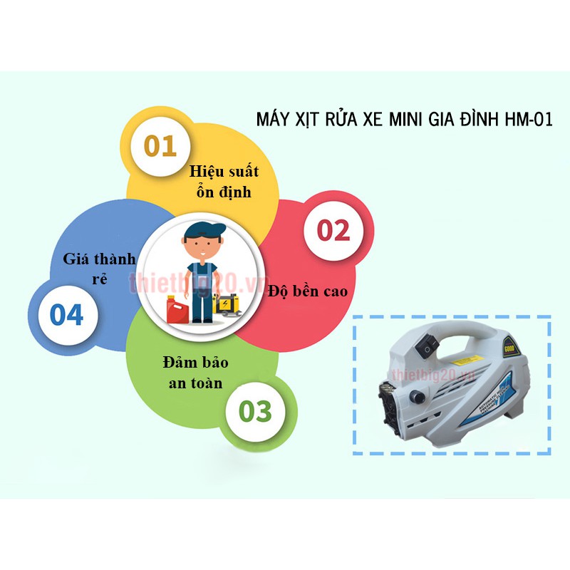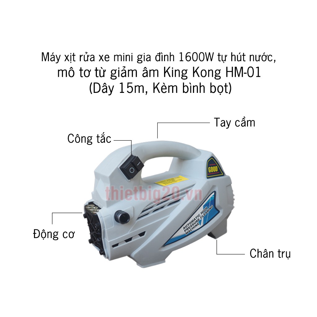 Máy xịt rửa xe mini gia đình 1600W tự hút nước, mô tơ từ giảm âm King Kong HM-01HM-01 là chiếc máy xịt rửa xe đa năng, không những chỉ dùng để rửa xe mà còn giúp bạn dọn vệ sinh nhà, vệ sinh máy móc, công xưởng, điều hòa, nhà bếp, tưới cây... rất thông dụng và tiện ích.