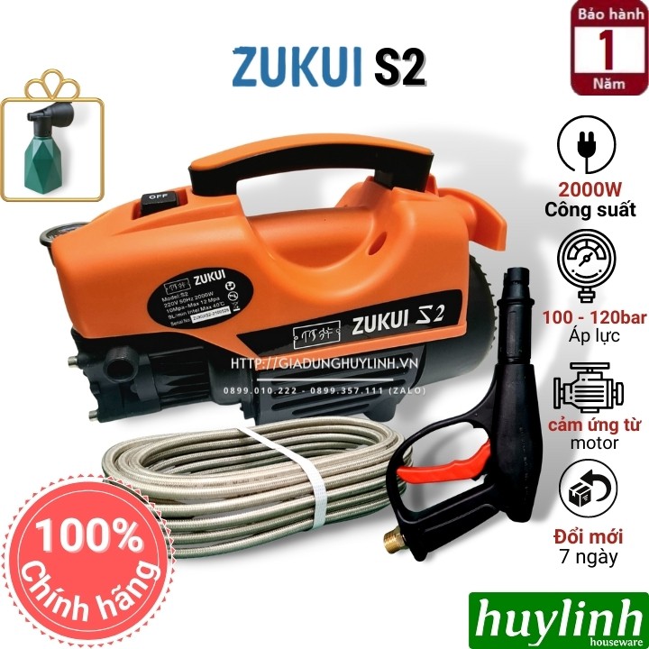 - Zukui S2 là dòng sản phẩm mới với thiết kế nhỏ gọn dễ dàng di chuyển và sử dụng. Máy phun xịt rửa cao áp Zukui S2 với khả năng tự hút nước tự động cực kì tiện dụng.