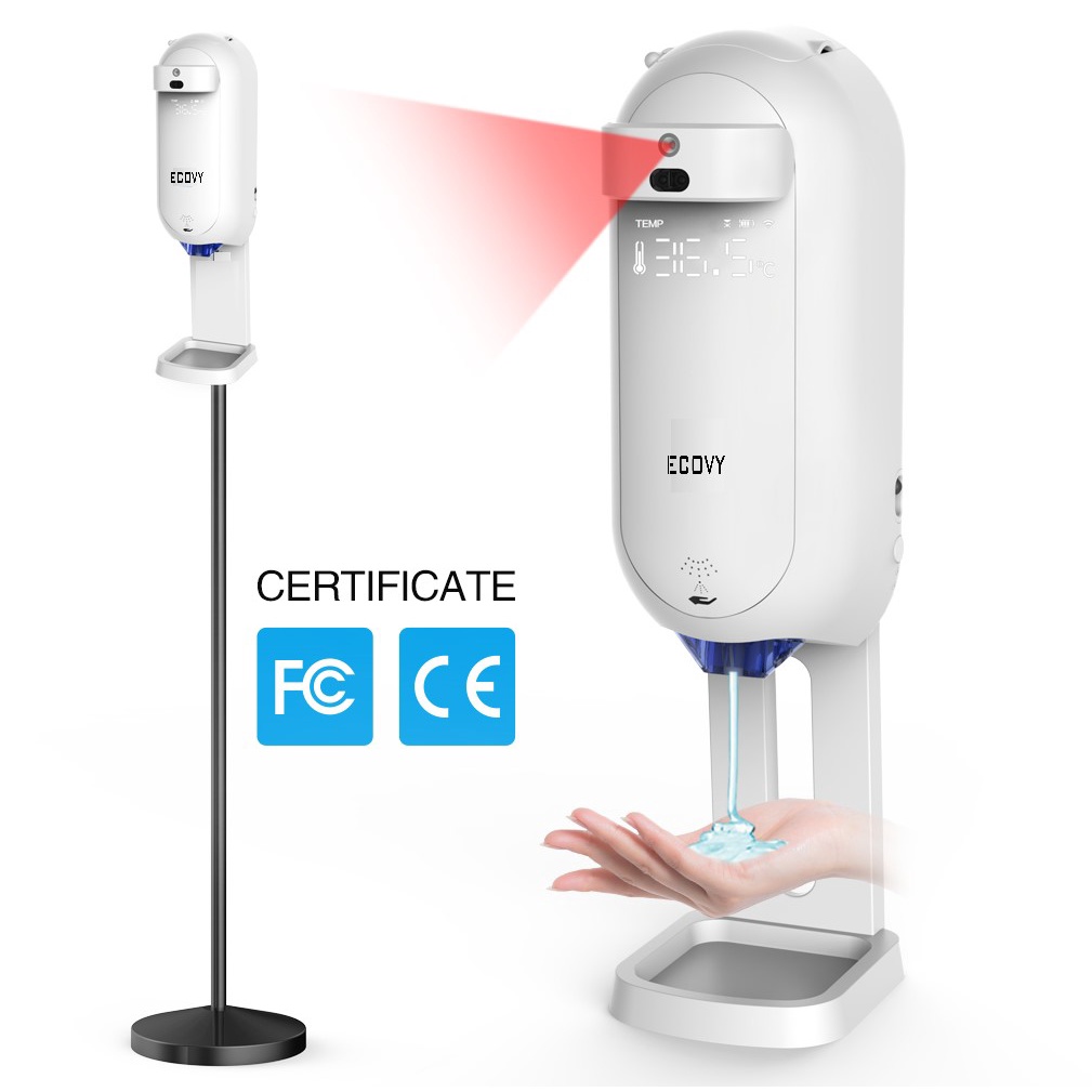 Giới thiệu Bộ máy xịt cồn cảm ứng kết hợp đo nhiệt độ ECOVY L5 Plus, Chân đế tròn đẹp chắc chắn
