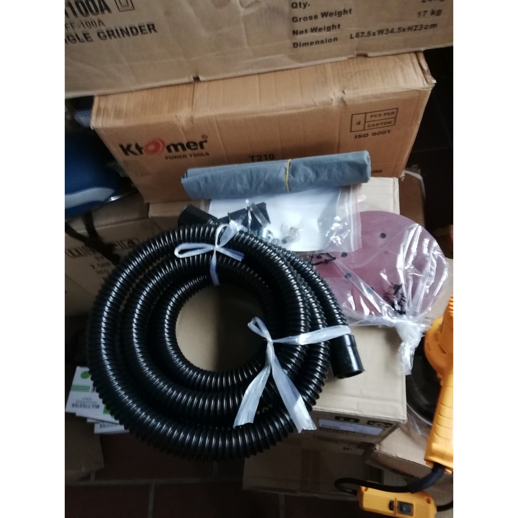 3 miếng nhám 180mm,..1 ống hút bụi,1tui đựng bụi, 1 khoá, 2 cố de,1 cặp than,1 công tắc,
