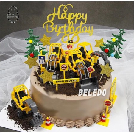Bộ máy xúc máy cẩu trang trí bánh kem (6 chiếc), làm đồ chơi cho bé