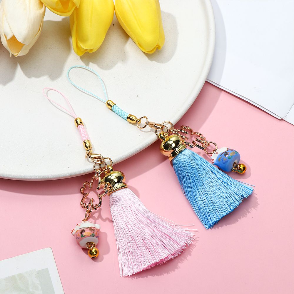 Name: Lucky Cat Bell Sakura Tassel Phone Lanyard