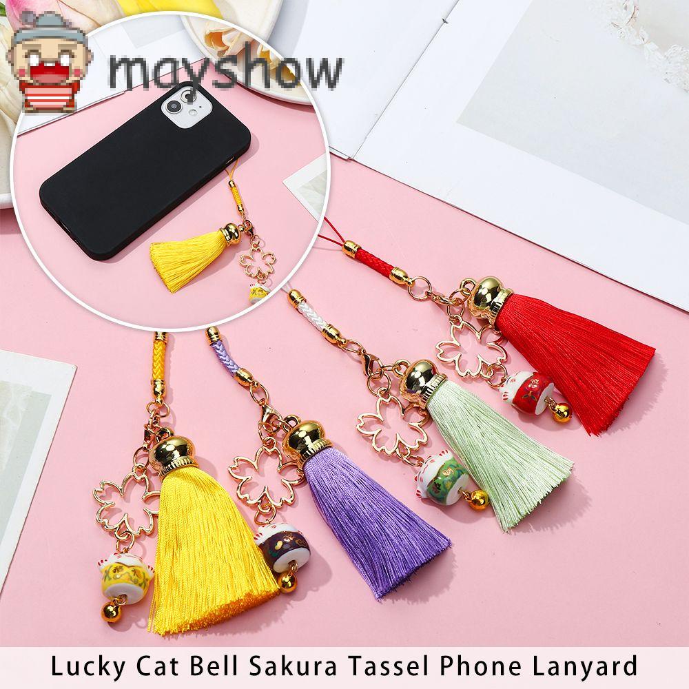 Giới thiệu MAYSHOW Lovely Tassel Phone Lanyard Japanese Style Lucky Cat Cell Phone Hang Rope New Accessories Cherry Blossoms Keychain Wrist Rope Bag Charm Pendant Hang Rope Bells/Multicolor