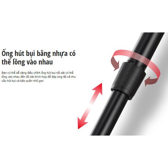 - Dễ dàng điều chỉnh ống hút bụi nối dài có thể lồng vào nhau đến độ dài thích hợp để đáp ứng tất cả nhu cầu hút bụi và bảo quản nhỏ gọn
