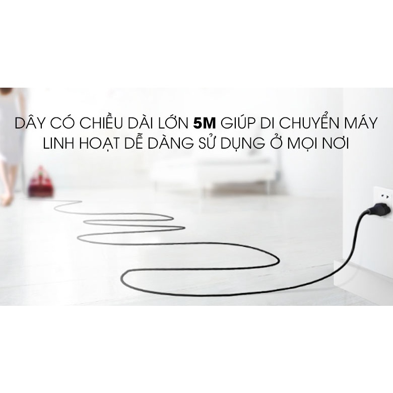 Công suất hút bụi 260W, công nghệ gió xoáy cực đại mang lại lực hút bền bỉ, mạnh mẽ, làm sạch căn phòng bạn nhanh chóng với công suất hoạt động mạnh mẽ 1800W, tiết kiệm điện năng