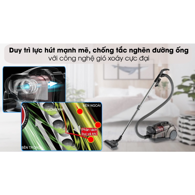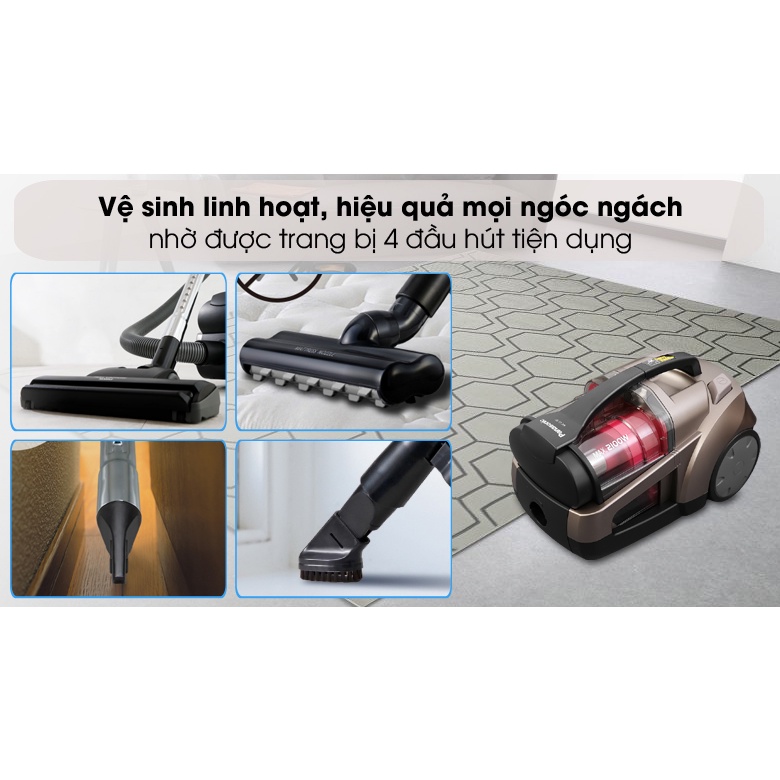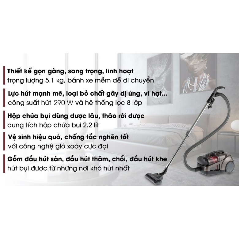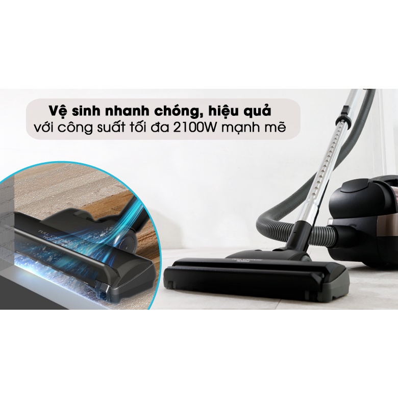 - Công suất 2100W với công suất hút 290W tạo lực hút mạnh mẽ.