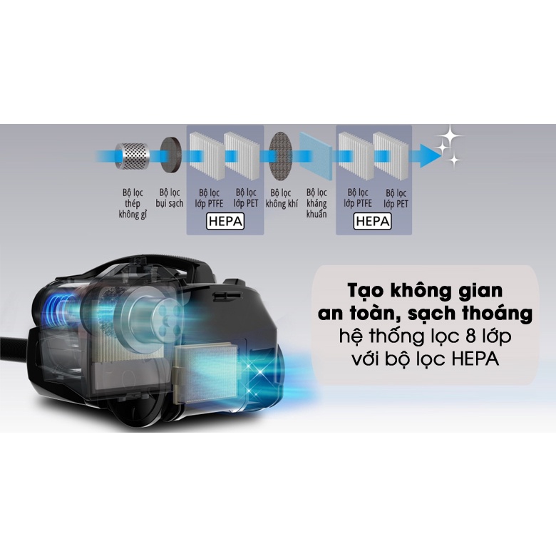 - Hệ thống lọc 8 lớp với bộ lọc HEPA kép & bộ lọc kháng khuẩn lọc sạch hiệu quả.