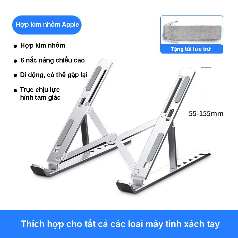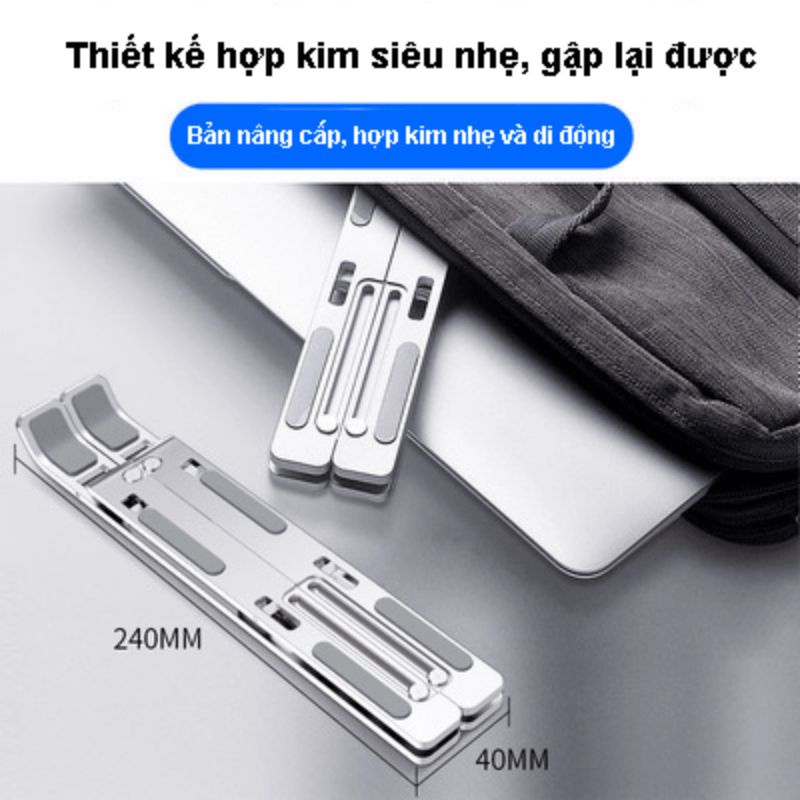 Giá đỡ laptop MacBook, Ipad, máy tính bảng, Surface... bằng hợp kim nhôm + có thể xếp gọn + điều chỉnh độ cao.