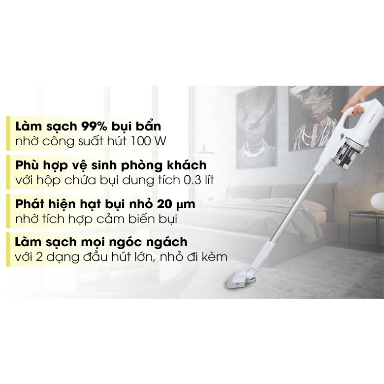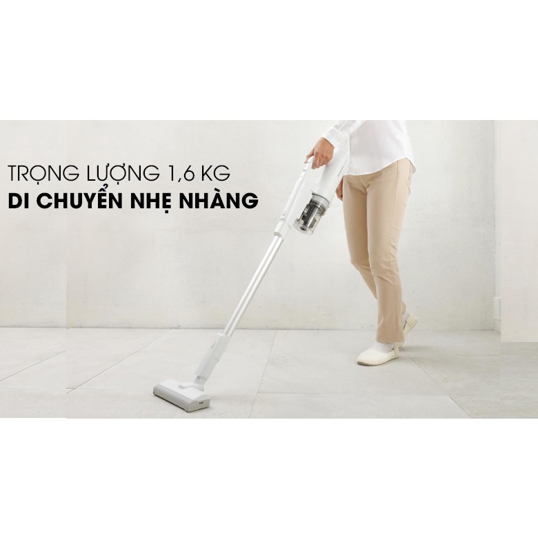 - Trọng lượng chỉ 1,6kg, cầm nắm 1 tay rất nhẹ nhàng, tối ưu dọn dẹp các vị trí trên cao mà không gây cảm giác nặng nề