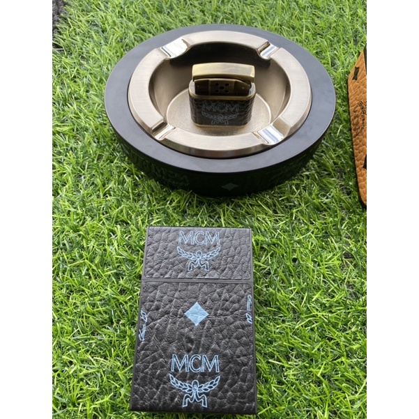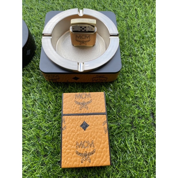 Bộ MCM Gạt tàn, Hộp đựng thuốc lá (bán từng món)- Bọc da MCM