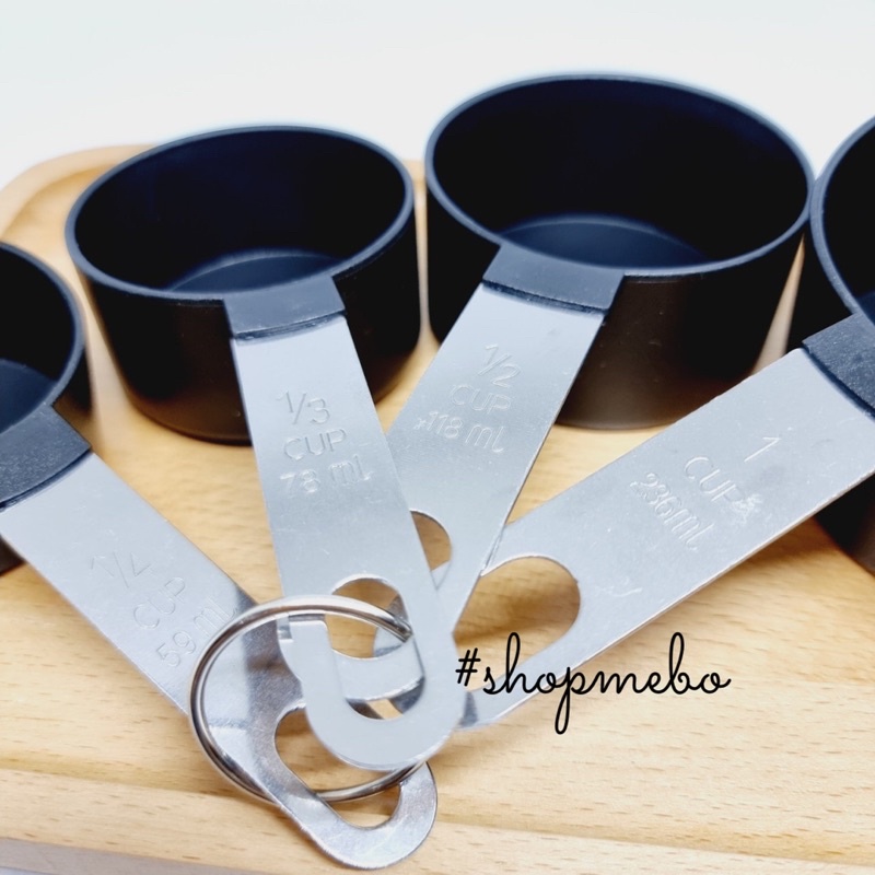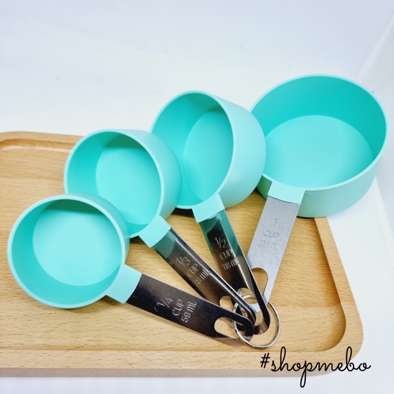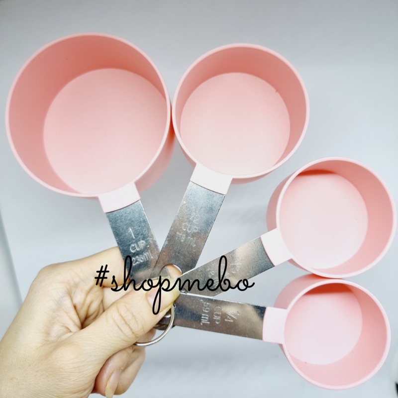 - Cốc đong (thìa đong lớn): là dụng cụ dùng để đong các nguyên liệu lỏng và khô với định lượng lớn. Một bộ cốc đong thường có bốn kích thước như sau: 1 cup (cốc), ½ cup, 1/3 cup, ¼ cup.