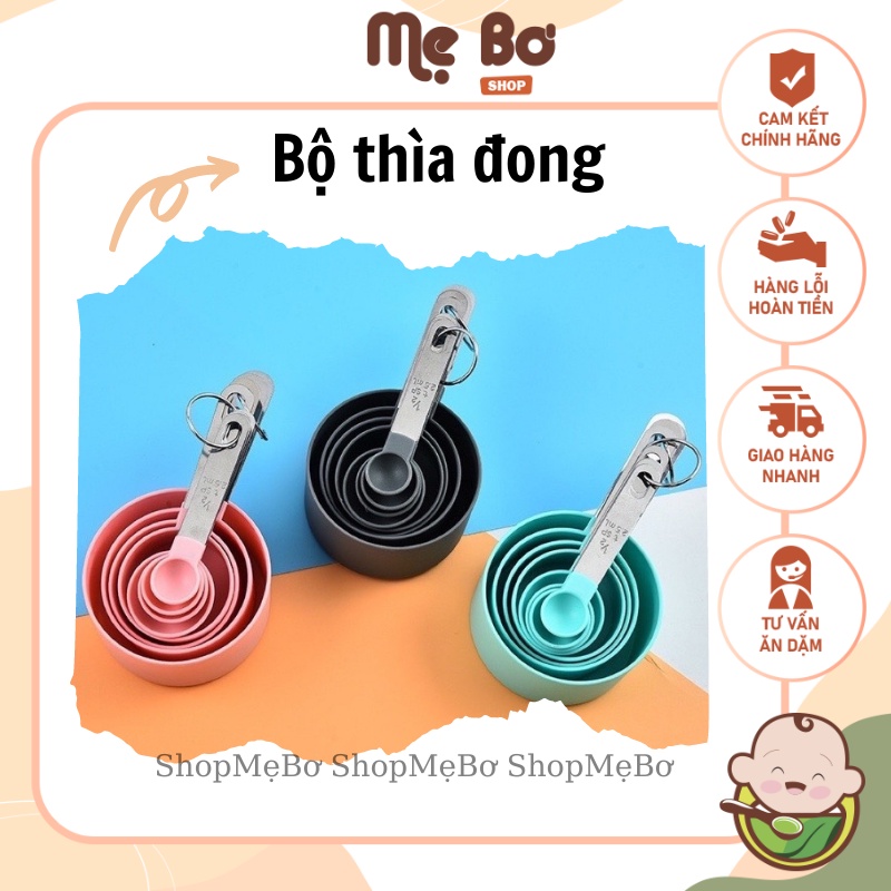 Mẹ Bơ có bộ muỗng thìa đong định lượng làm bánh đủ 8 kích cỡ khi nấu ăn, rất tiện dùng trong nhiều công thức nấu ăn dùng đơn vị đong luôn. Mình sẽ dễ dàng khi làm bánh hơn.Mô tả sản phẩm bộ dụng cụ đo lường: