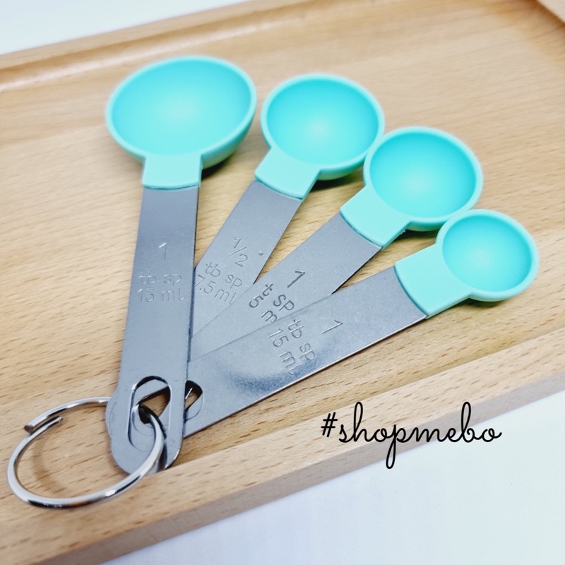 [Mẹ Bơ] Bộ thìa đong bột làm bánh đầu nhựa, tay cầm inox