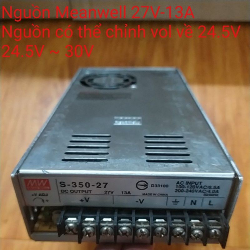 Nguồn Meanwell 27V-13A ~ 24V-14.5A, chỉnh vol từ 24.5V-30V. Hàng cũ tháo máy.