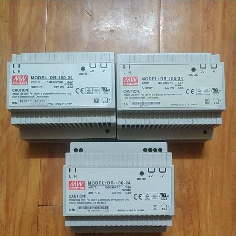 Nguồn Meanwell gắn ray 24V-2.5A DR-60-24. Meanwell 24V-4.2A DR-100-24Hàng cũ tháo máy tự động hoá.