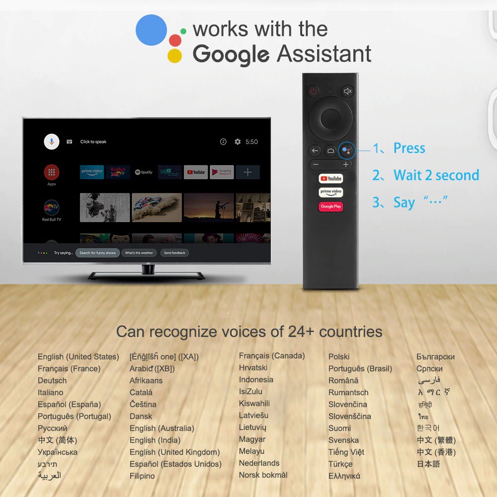 Bộ sản phẩm:1 x TV Box, 1 x Remote Voice, 1 x Cáp HDMI, 1 x Nguồn Adapter, 1 x Sách hướng dẫn Tiếng Anh