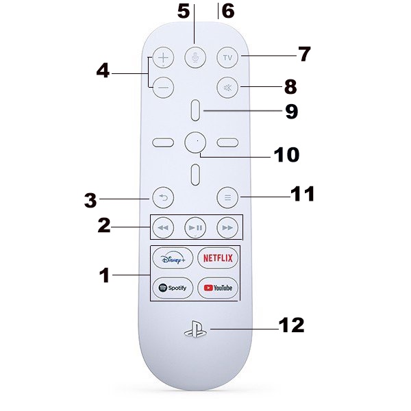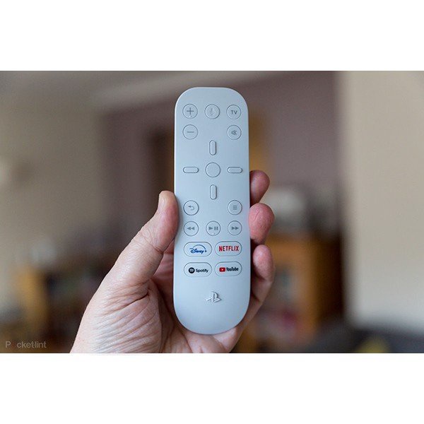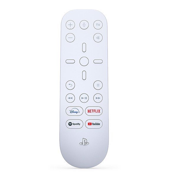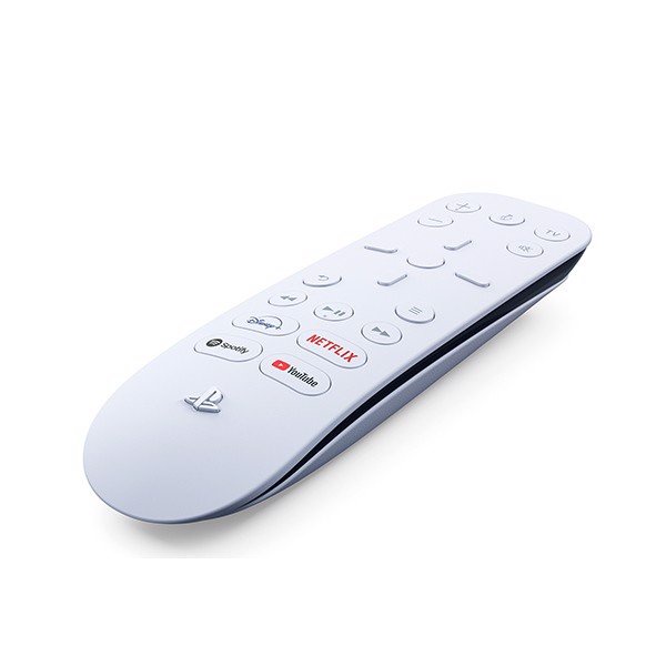 Media Remote là điều khiển từ xa hoàn toàn mới dành riêng cho PS5, sở hữu thiết kế tương đồng với PS5 với các đường nét bo cong mềm mại uyển chuyển và tone chủ đạo là màu trắng như hệ máy PS5. Trên remote cũng có khắc các họa tiết PlayStation như trên máy PS5, tay cầm và các phụ kiện khác.