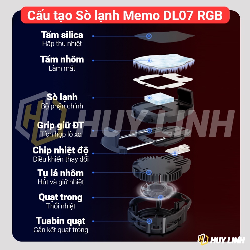 Điện Thoại & Phụ Kiện > Phụ kiện > Quạt USB & Quạt điện thoại || Memo DL07 Led RGB - Sò lạnh kiêm quạt tản nhiệt cực mát thế hệ mớiCòn hàng