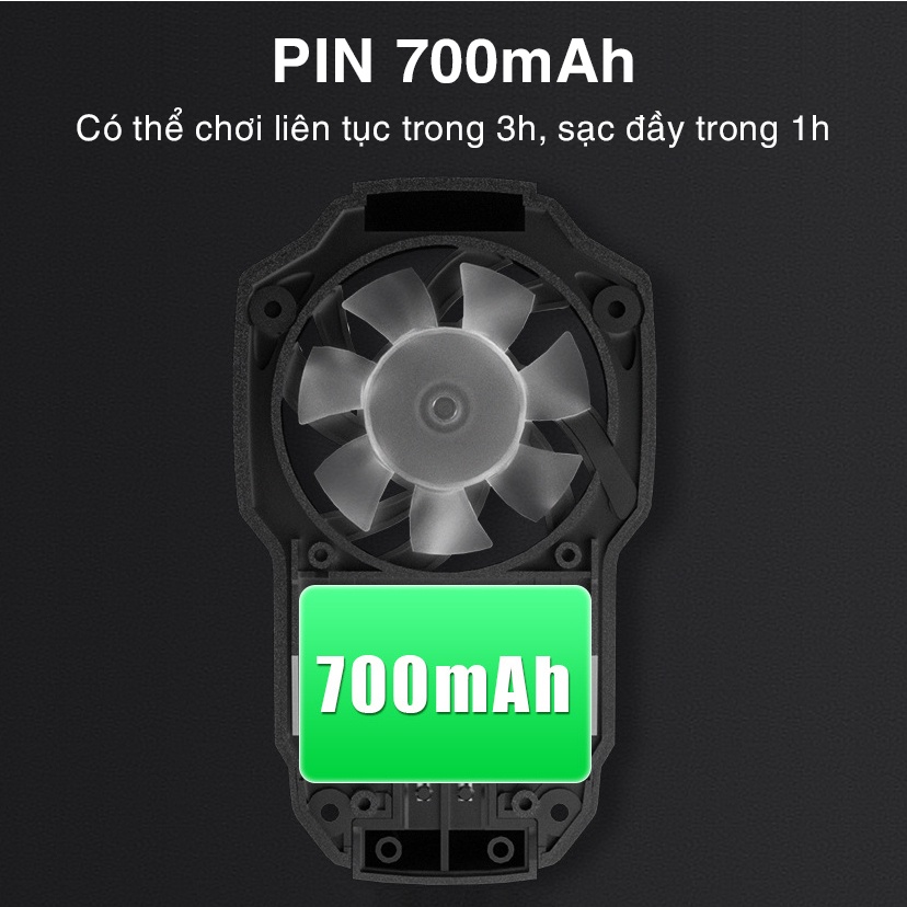 - Tiện lợi hơn nữa của những dòng quạt tản nhiệt khí đó là sử dụng pin chứ không cắm nguồn trực tiếp do đó bạn có thể mang chúng đi bất kỳ đâu. Pin của FL05 là 700mAh bạn có thể sử dụng liên tục trong vòng 3 giờ và sạc đầy trong 1 giờ.