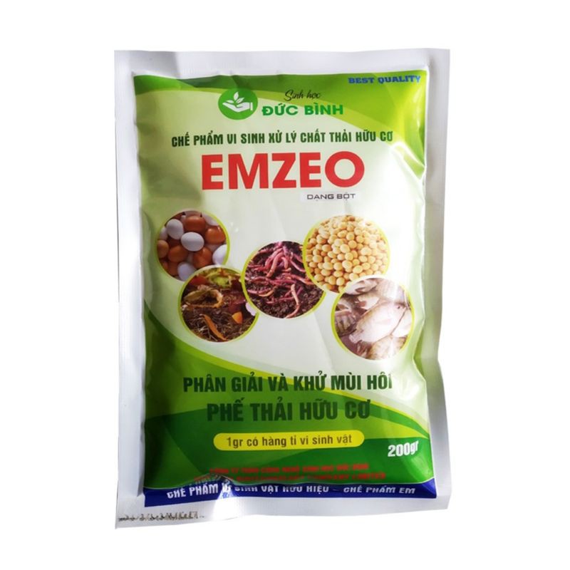Chế phẩm vi sinh xử lý chất thải hữu cơ EMZEO dạng bột dùng để phân giải và khử mùi hôi phế thải hữu cơ. Với hàng tỷ sinh vật có lợi có trong 1gr, Emzeo còn tiêu diệt các vi sinh vật gây bệnh, chống ô nhiễm môi trường theo cơ chế sinh học.1. Xuất xứ: Công ty TNHH Công Nghệ sinh học Đức Bình.