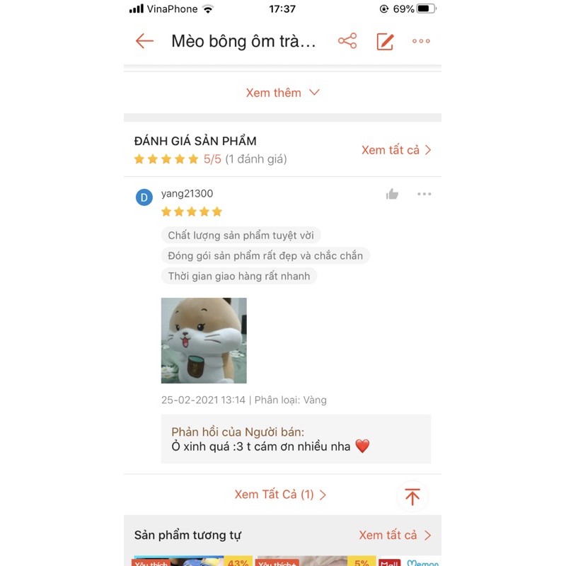 Mèo bông ôm trà sữa cực xinh ❤️ size 40cm